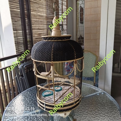 KANDANG BURUNG PERKUTUT ROTAN MODEL RAJUT, DIAMETER 37Cm, SANGKAR KUTUT ANYAMAN LOKAL, Tabok Bisa di Lepas. Pengiriman khusus GOSEND / GRAB.